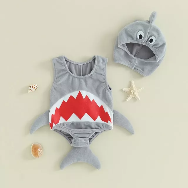 Baby Shark Halloween Romper with Hat – Infant Unisex Sleeveless Bodysuit Costume